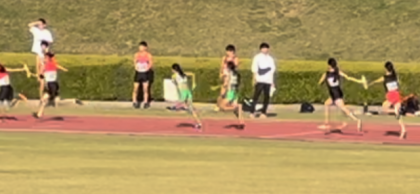 幅跳び2名 投てき1名 ハードル1名と短距離専門がいない中、4位と健闘しました。日頃の走りが速くなるための補強の練習を頑張った結果だと思います。