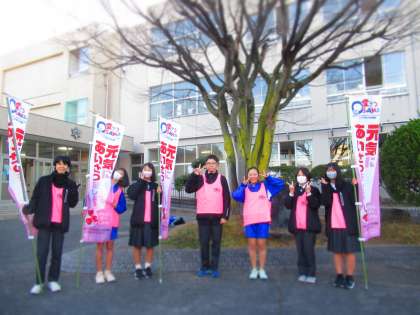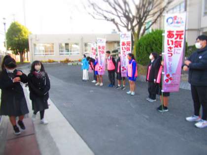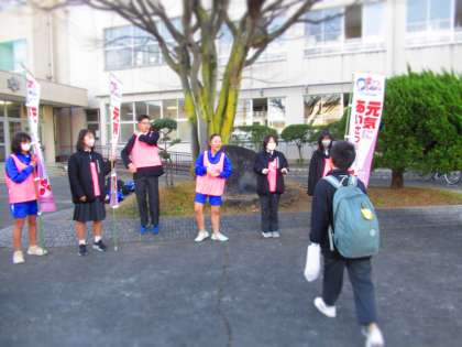 12月の生徒会あいさつ運動は8日、寒空のもと行われました。
