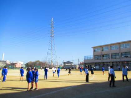 お昼休み、グラウンドで遊ぶ生徒たち。