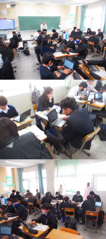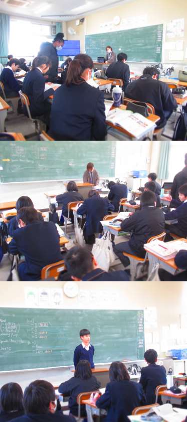【写真上】技術科 1月に行った研究授業のようすです。 【写真下】英語科