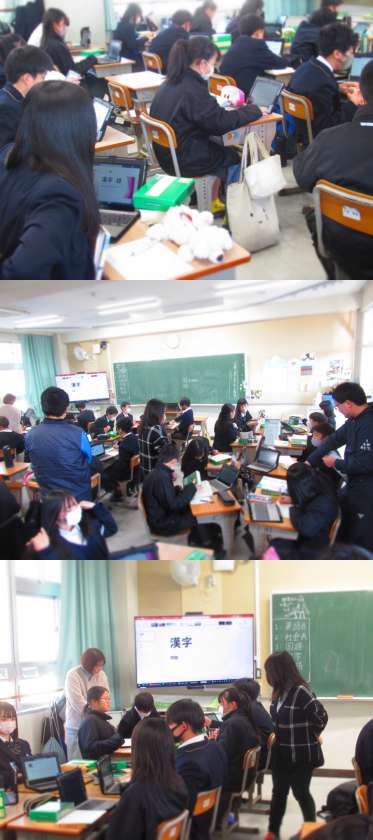 3学期 研究授業 公開日 2024/02/17 更新日 2024/01/20 お知らせ 【写真上】社会科 研究授業のようすです。 3学期研究授業は、1年生全クラスで実施し全職員で参観しました。 【写真下】国語科
