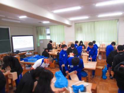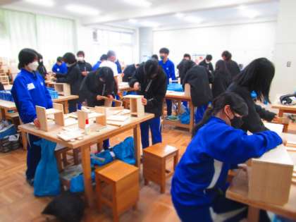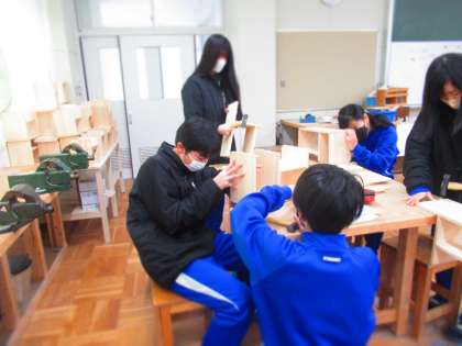 6日1限、技術室から聞こえてきたのは木材加工をしている音でした。