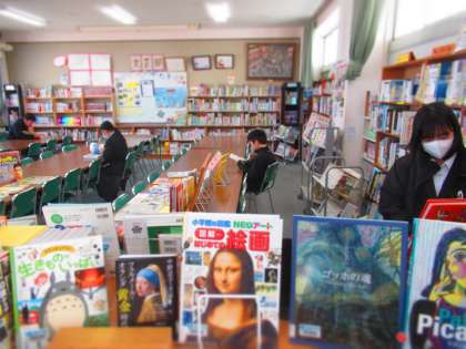 お昼休み、図書室のようすです。