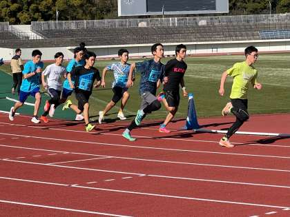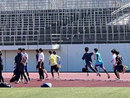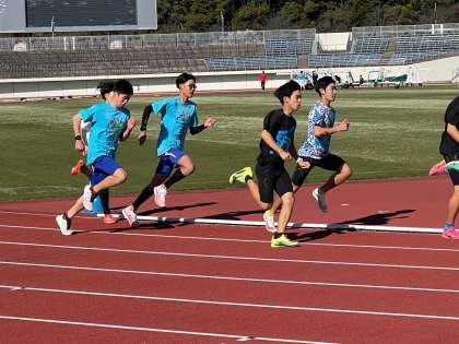 2年生の辻くんです。今日は、専門種目の800m用の練習しました。短い距離のスピード練習です。100mを15秒以内のスピードで800mを走らないと全国大会には行けません。駅伝のために長い距離を中心にやってきたので速いスピードで走れる持久力が課題です。