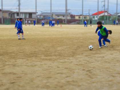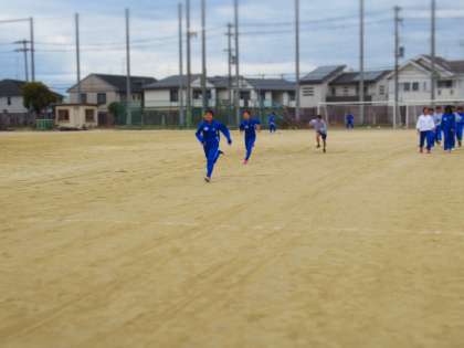 【写真上】陸上競技部 【写真下】サッカー部の練習です。