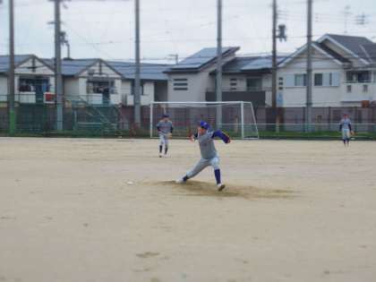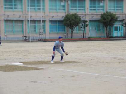 対戦相手は、大阪市立梅花中学校で、降雨とグランドコンディション不良のため5インニングのみのゲームとなりました。
