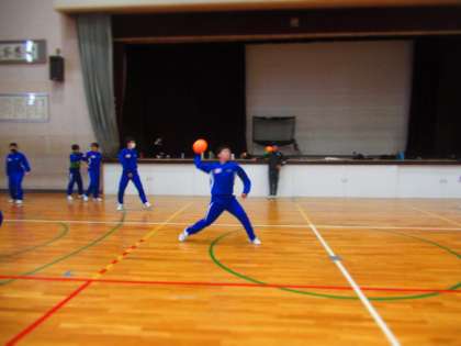 男子体育は柔らかいボールでのドッチボール。