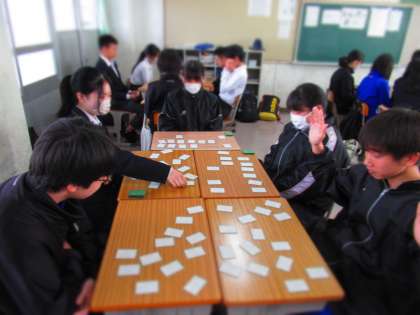 百人一首大会に向けて練習中です。
