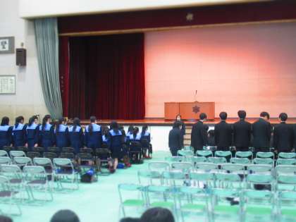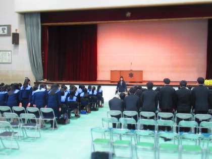 卒業式予行は、厳粛な雰囲気の中行われました。