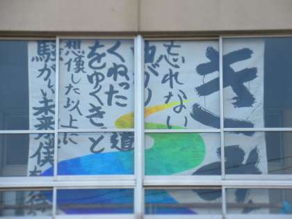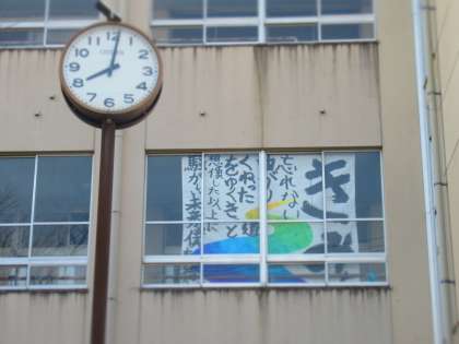 3年生へのメッセージボードが3年生校舎に飾られています。