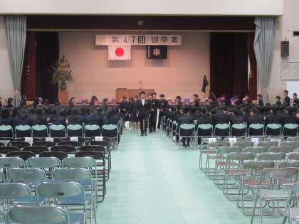 式が終わり、保護者の方々が体育館からグラウンドにかけて花道を作ってくださっている間、卒業証書を受け取りました。