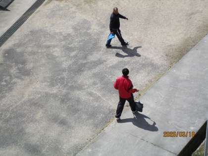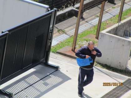 不審者が南門から入って来ました。声かけをして相手の動向を伺います。