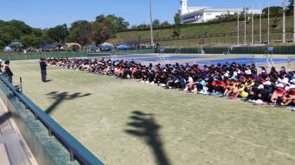 兵庫県の中学校・クラブチームを中心に男女合わせて53チームが参加し,コート16面を使用して予選リーグの後,順位ごとのトーナメントで勝敗を競いました。本校からは1チームが参加しました。