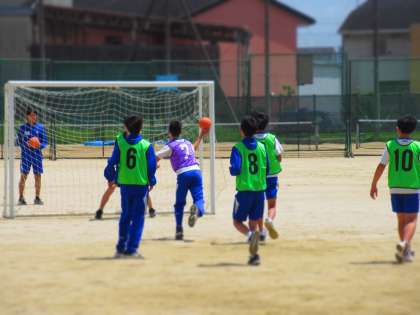 3年生男子体育は、ゴール型球技のハンドボールの授業を展開。
