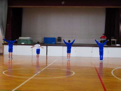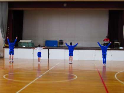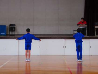 2年生体育では、ラジオ体操第2のテストが行われています。