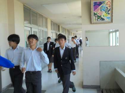 6時間目に避難訓練がありました。指示に従い避難しています。
