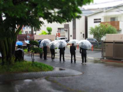 教育実習の先生方は雨の朝も、正門に立ちあいさつ運動をしてくれています。 今週から授業実践が始まります。