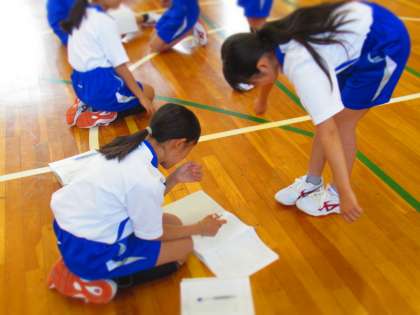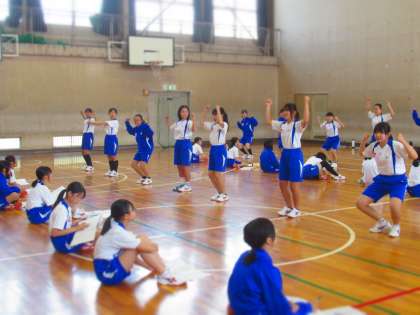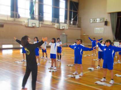 女子はペアで細かい動きをお互いにチェックし、教え合っています。