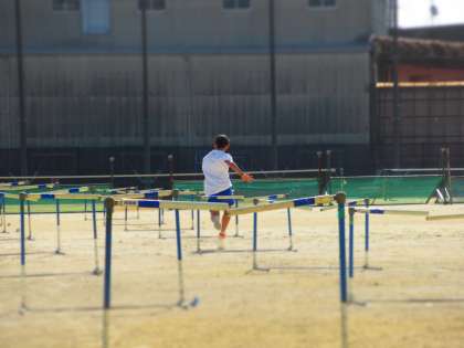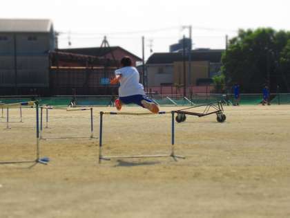 陸上競技部、ハードル走の練習です。