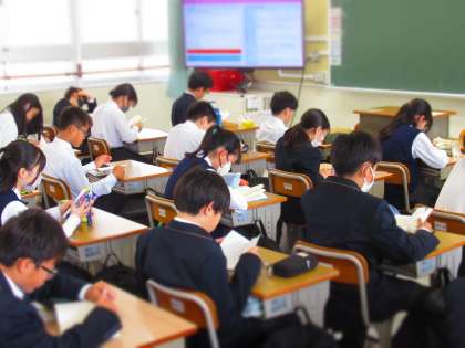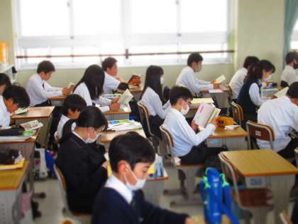 1年生、朝読書のようすです。