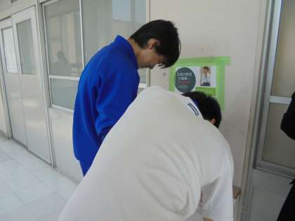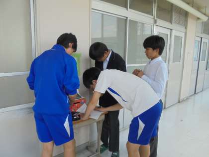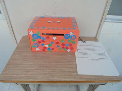 生徒会が意見箱を設置しているところです。さっそく意見箱に投函している生徒がいました。