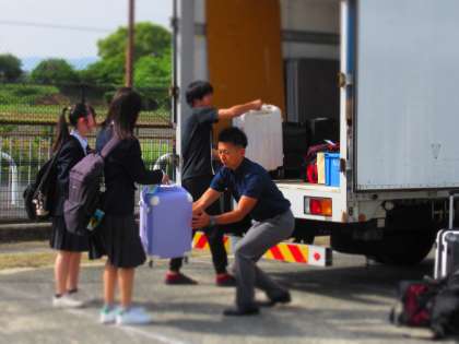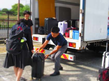 トラックへの積み込み作業。