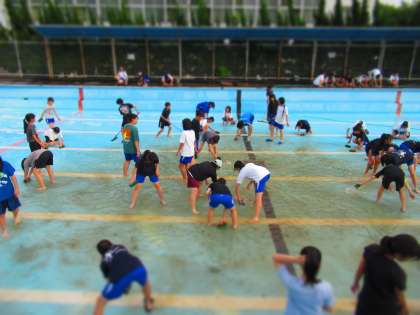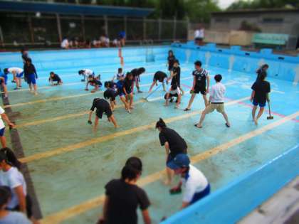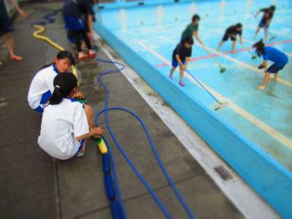 プール清掃中のようすを紹介。