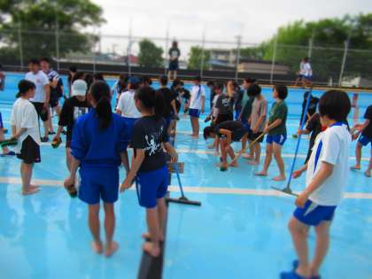 掃除も終盤を迎え、プールの底がずいぶんきれいになってきました。