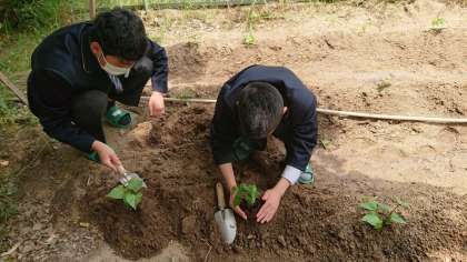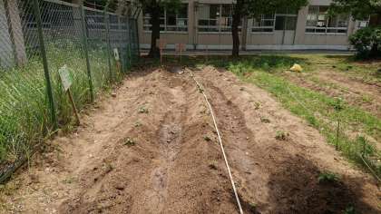 今日は、さつまいもの苗を植えました。