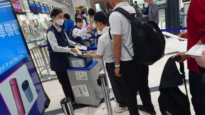 今から搭乗手続きをして、飛行機に乗ります。