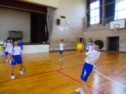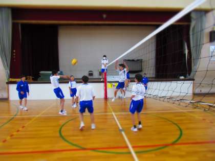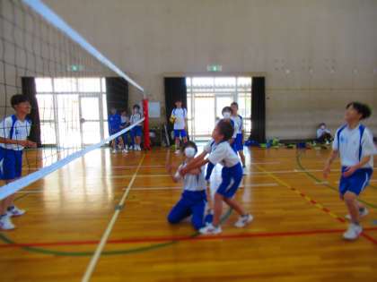 バレーボールの試合に臨む2年生。 ケガしないように!