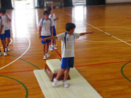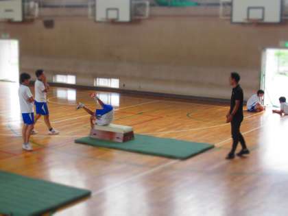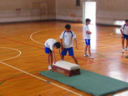 体育館で実施した跳び箱運動。