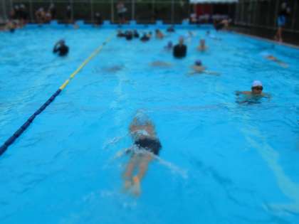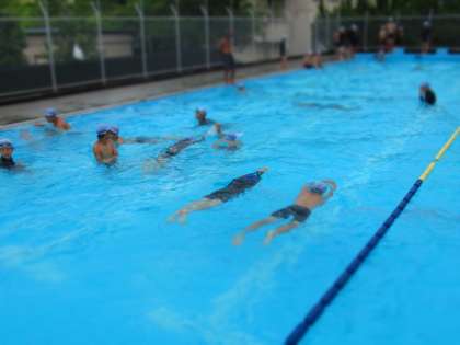 2限め。 朝から降っていた雨もあがり、水泳授業を受けています。