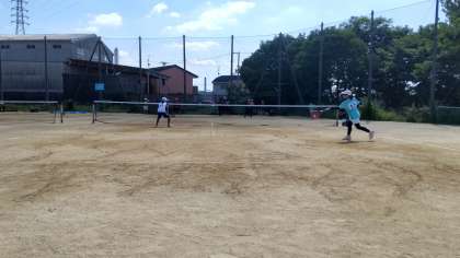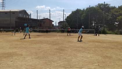 7/21(日) 本校テニスコートにおいて,小津・福泉・山直中と練習試合を行いました。各校1チームずつ,80分ローテーションで対戦相手を替えての団体戦形式で行いました。