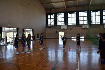 女子バスケットボール部の練習を紹介。