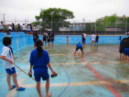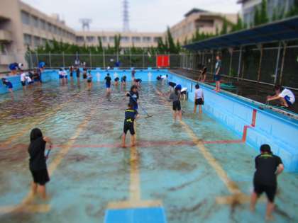 5月23日に実施したプール清掃。 今はきれいになっているプールも、こんな状態でした。