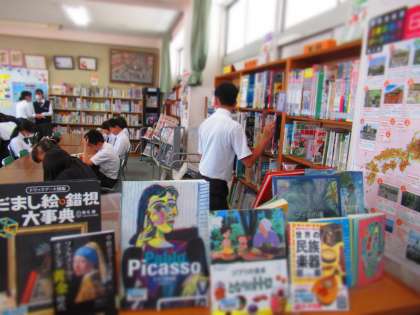 平日お昼休みの図書室は、多くの生徒が来室しています。