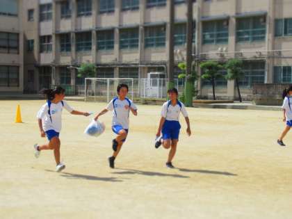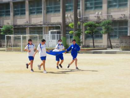 クラス全員参加の学年種目を何度も練習しています。 めざせ優勝!