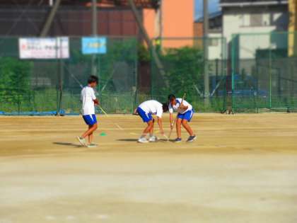 ライン引きをしてくれている陸上競技部の部員さん。