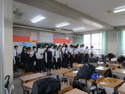 各クラス来週の合唱コンクールに向けて練習中です。みんな声が出ていますね。