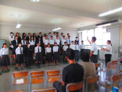 合唱を聞いた他クラスの先生は、発表したクラスの出来具合に驚いたようすでした。