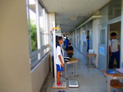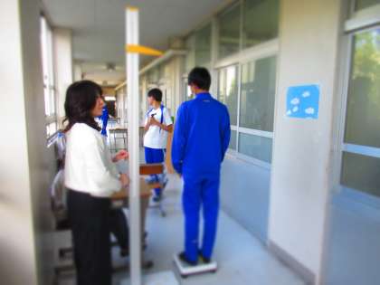 生徒からは、「4月から2cm伸びたーー!!」という声や、「最悪、体重増えてしまった」など、身長計と体重計の前で一喜一憂する姿がありました。