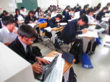 3年生、教室でテスト勉強をしています。