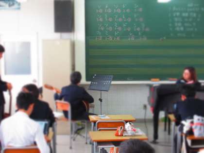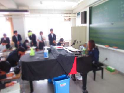 3年生音楽科の授業で、ギター・アルトリコーダーの実技テストを行っています。