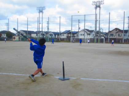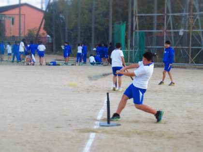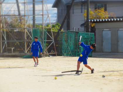 とある生徒は、奥に見えるネットまで打球を飛ばしていました。