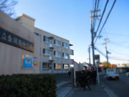 放課後に校外で部活動をする生徒は自転車を押して登校しています。