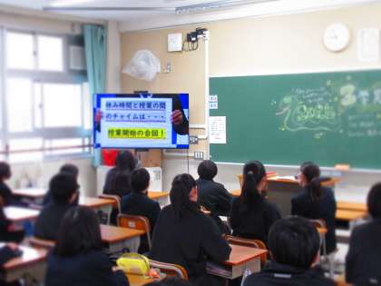 LIVE配信の始業式を視聴する生徒。