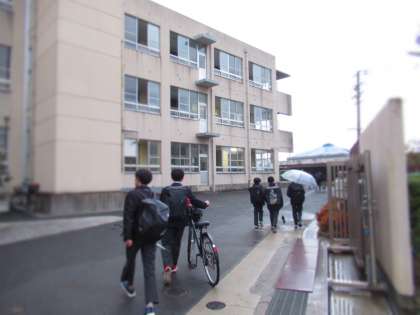 今日は木曜日クラブデーなので、放課後校外で練習する生徒は自転車を押して登校しています。
