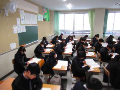 大阪府チャレンジテストを受ける1年生。