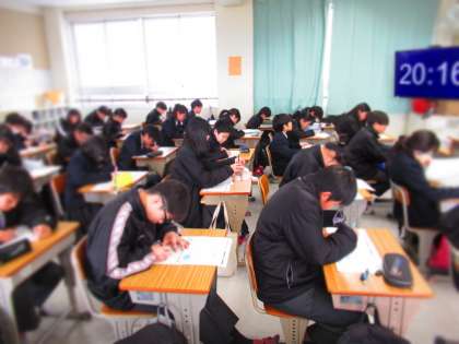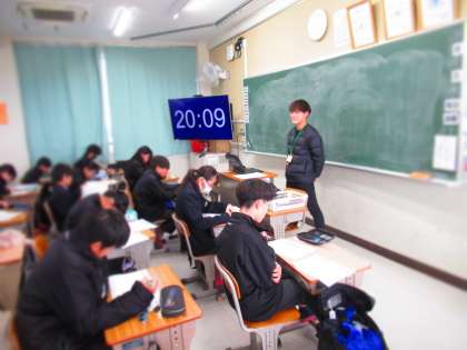 1年生、数学の授業では、宿題テストにチャレンジしています。